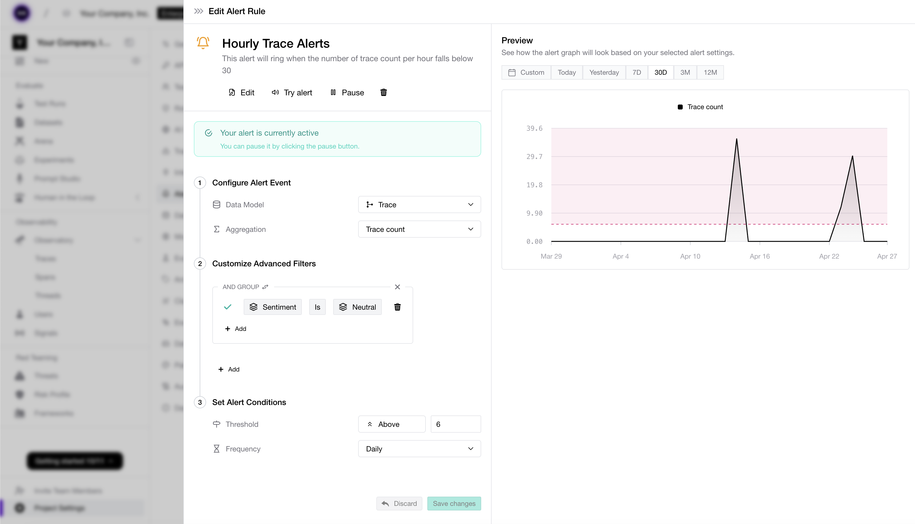 - Automatic detection of AI app failures, quality drift, user sentiment shifts, performance regressions, and cost anomalies in production.